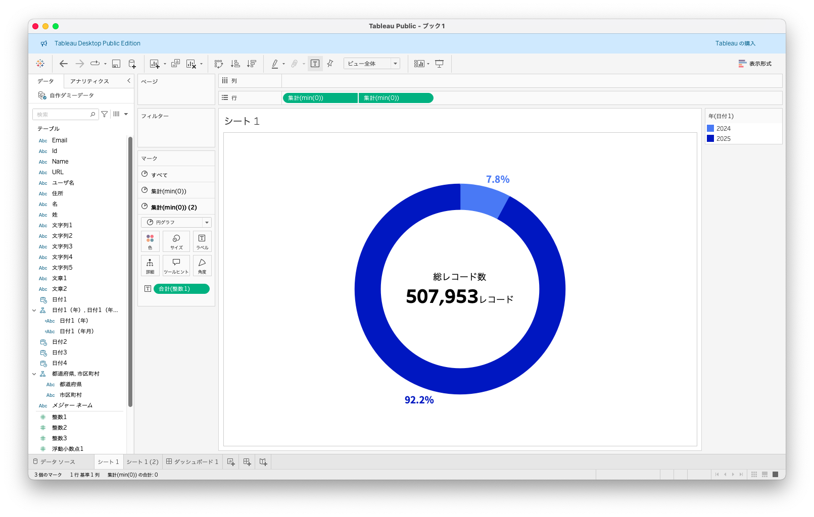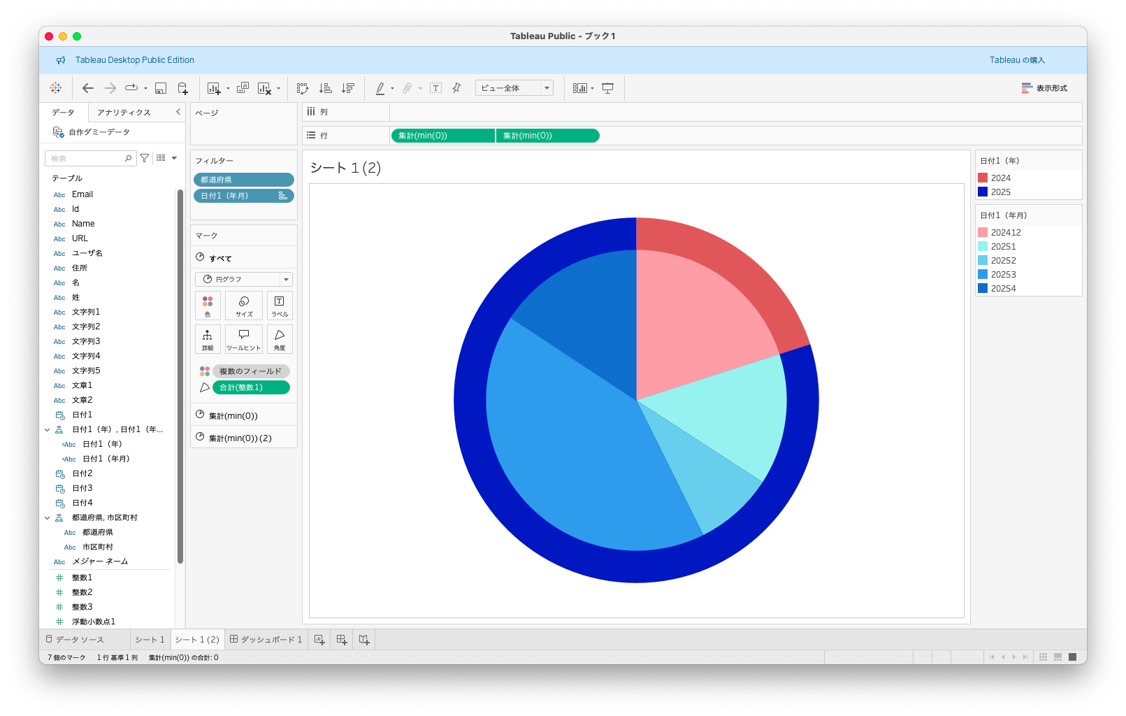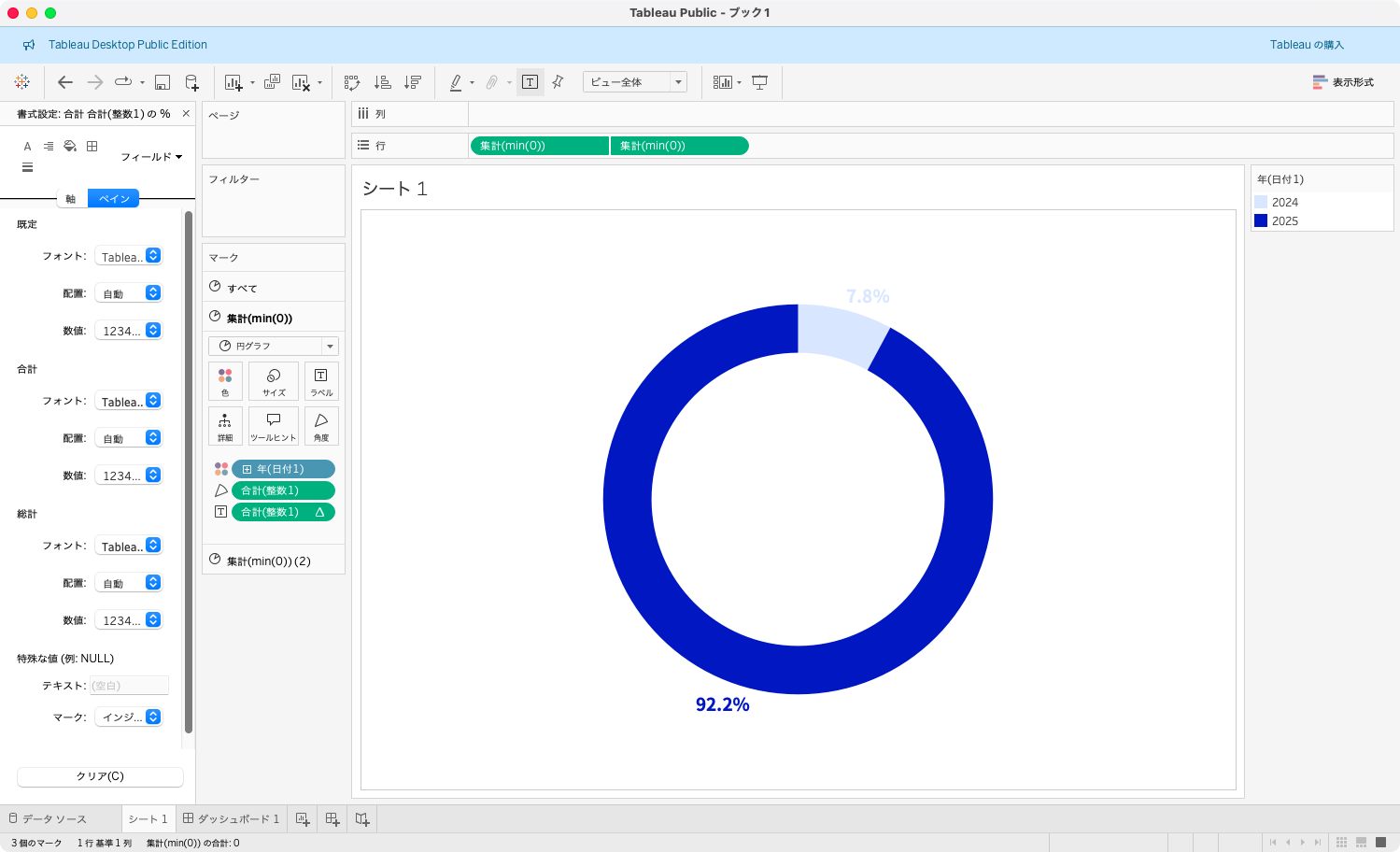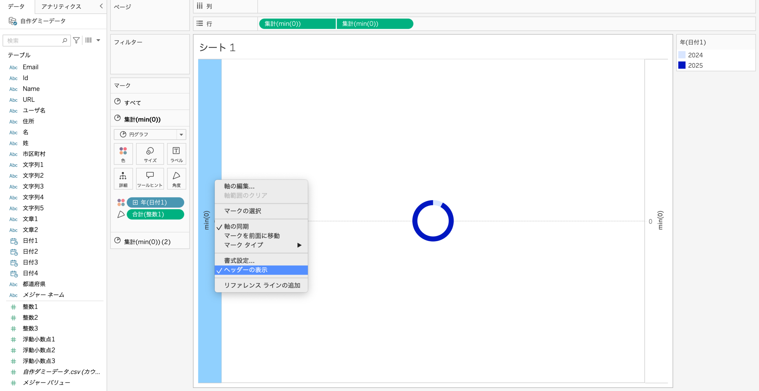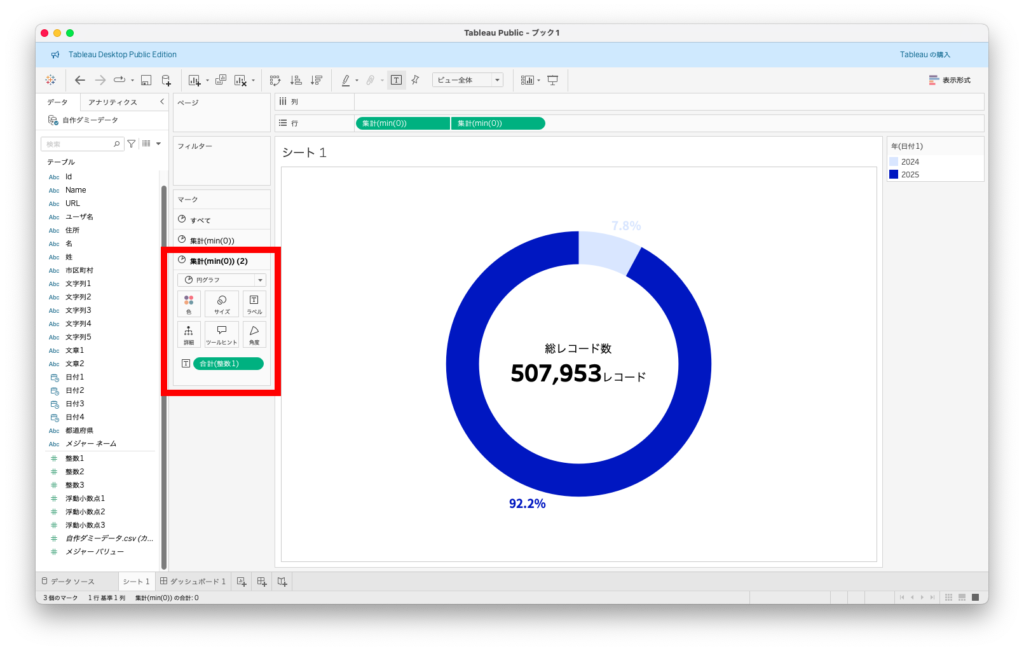 【Tableau】ドーナツ円グラフ・二重円グラフを描画する