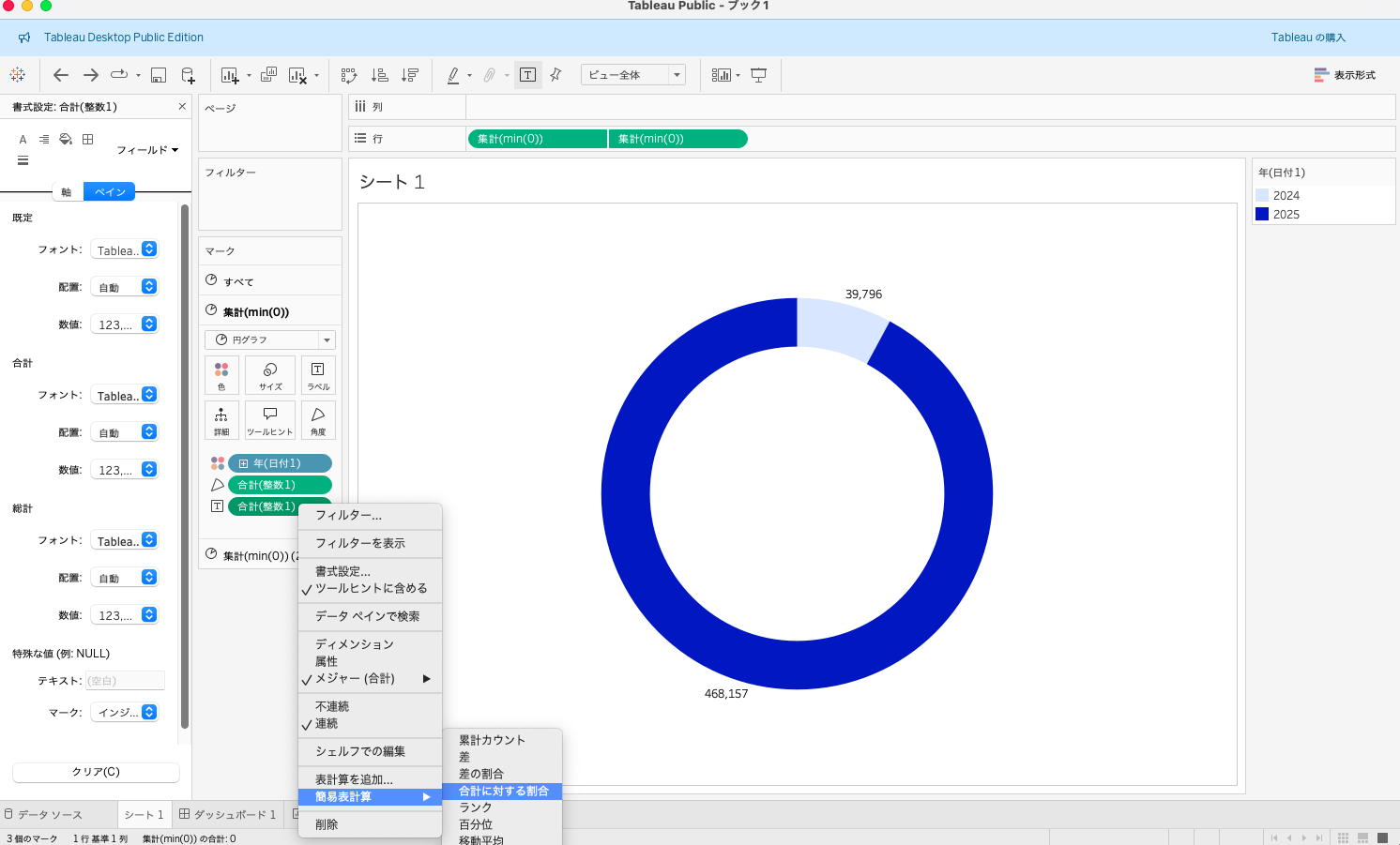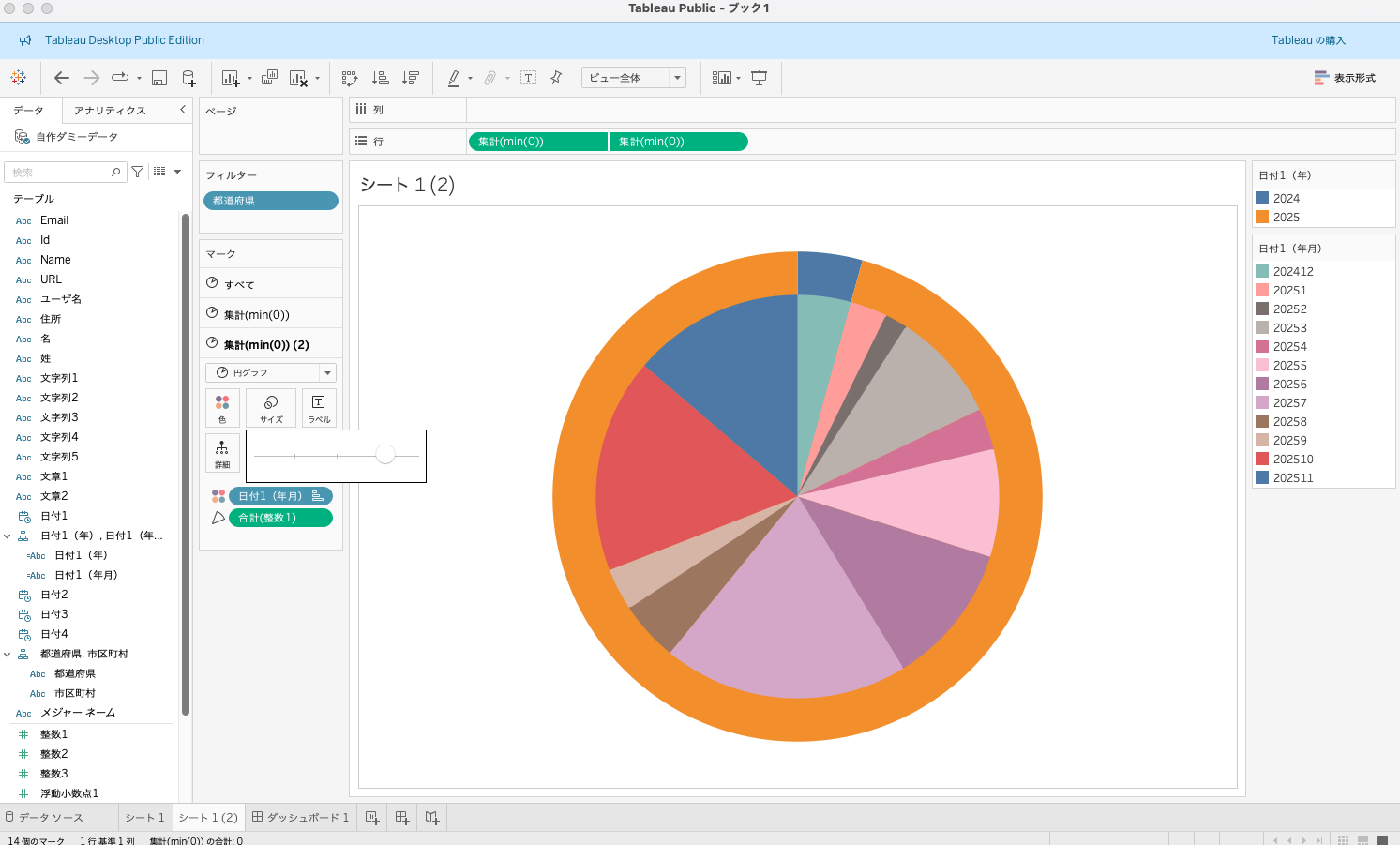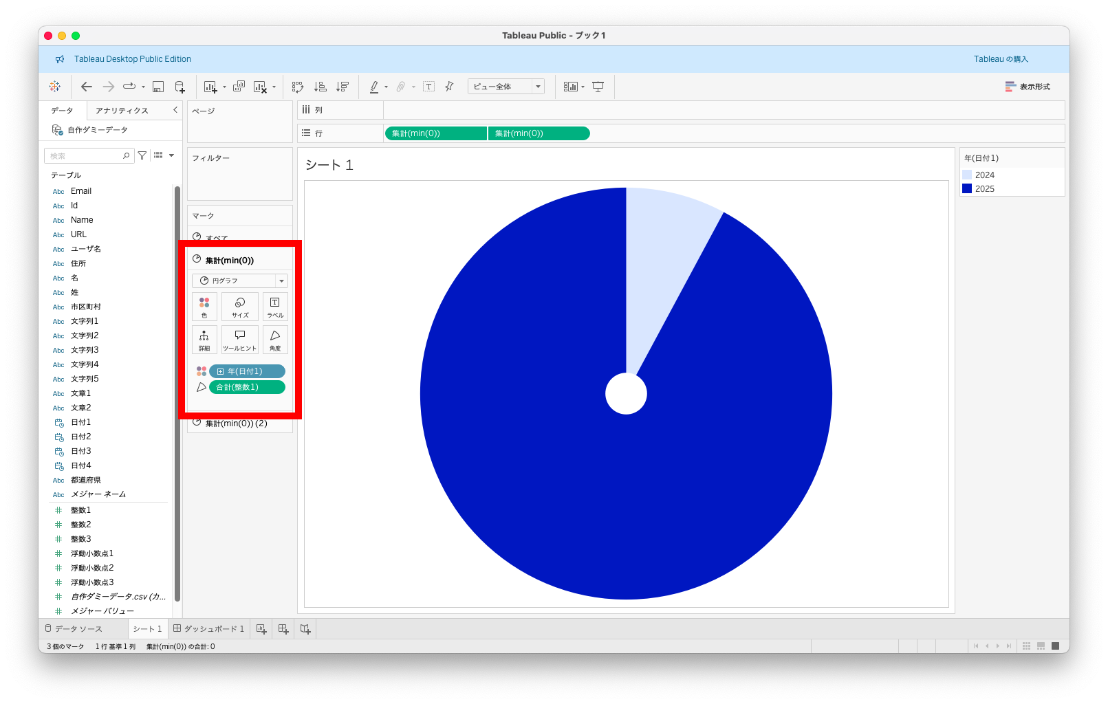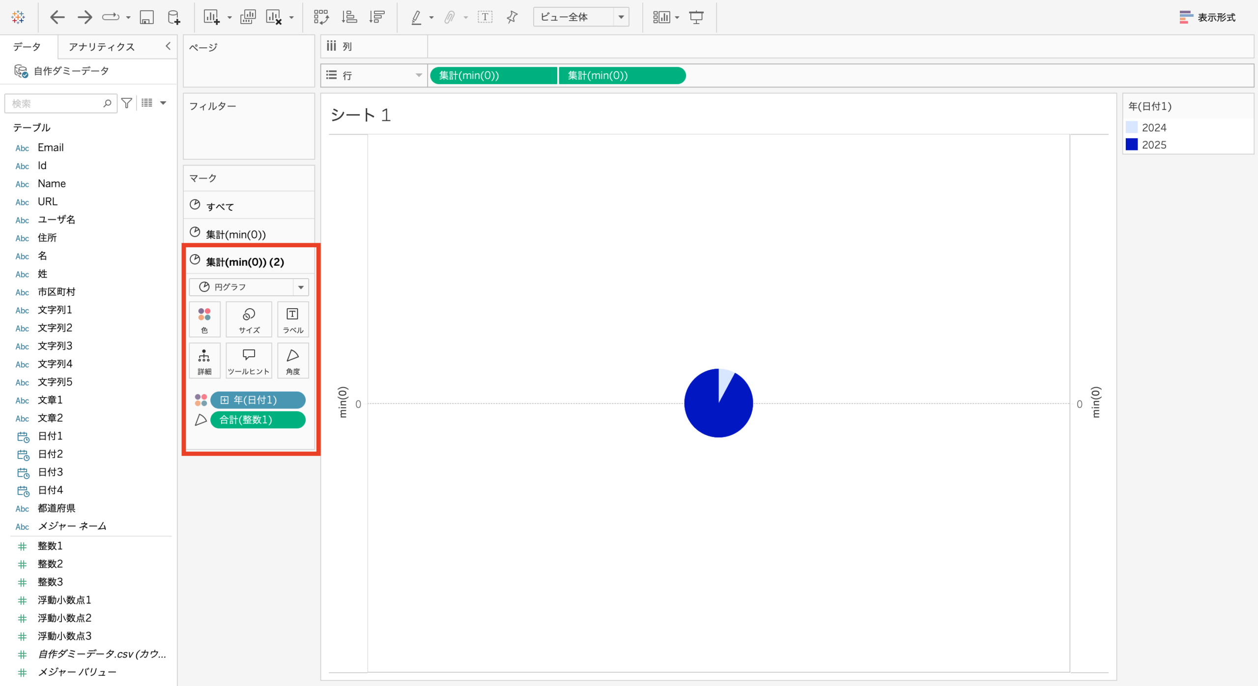 【Tableau】ドーナツ円グラフ・二重円グラフを描画する